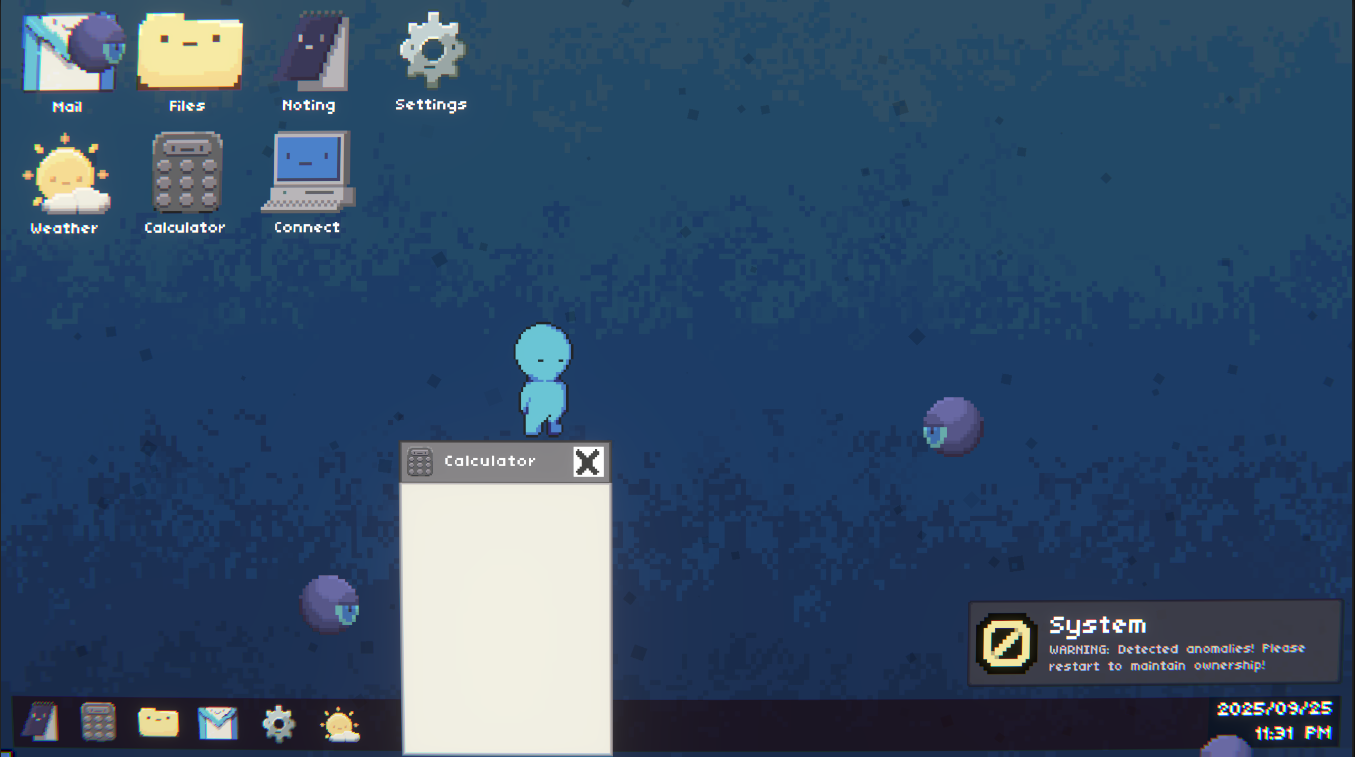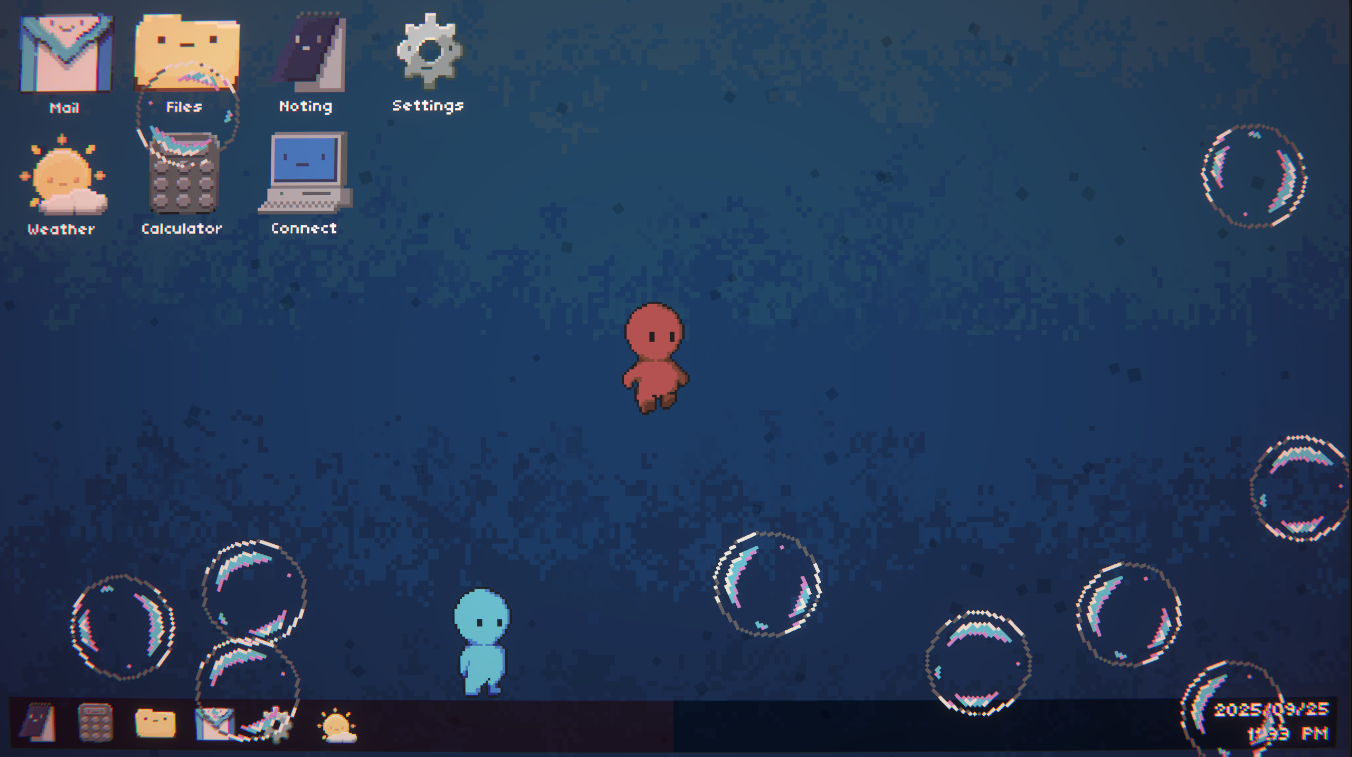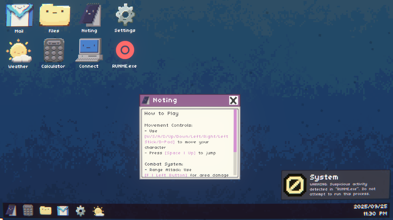 Take control of a cursor or a platforming character while fighting off a malicious hacker, all taking place within a stylised desktop environment. 2 Players are required to play. Use the Connect app to join each other!
